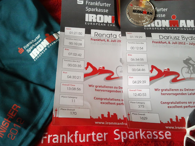 Jadąc do domu mieliśmy mnóstwo czasu na analizy, przemyślenia własne, rozmowy. Doszliśmy z Darkiem do wniosku, że start we Frankfurcie odebraliśmy dużo przyjemniej i znośniej niż dwa lata temu w Borównie z wielu powodów: po pierwsze potwierdziła się stara jak świat zasada, że na dużych zagranicznych imprezach są duże emocje, są kibice, nie ma wpadek organizacyjnych i zawodnik jest w centrum uwagi. Poza tym my sami byliśmy dobrze przygotowani, dużo trenowaliśmy i nałożyły się kolejne sezony doświadczeń triathlonowych. Teraz nie odbieramy tego jak jakąś straszliwą mękę i nie reagujemy: koniec z tymi ironmenami. Z każdym startem zresztą jest coraz lepiej.