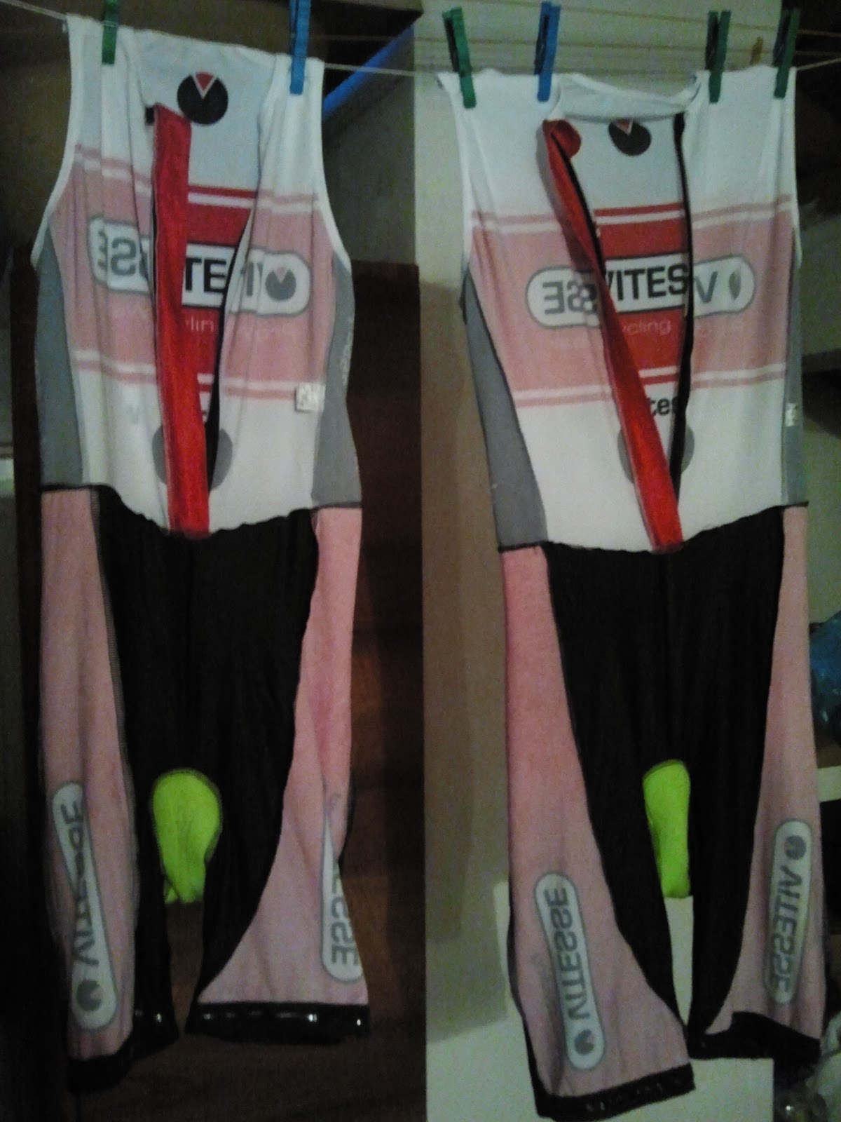 Jeszcze dwa słowa o suwakach. W naszej wersji strojów są one z przodu. Są też wersje z suwakiem z tyłu (to chyba na zawody rozgrywane przy udziale sędziów z PZTri, którzy lubują się w zwracaniu uwagi żeby suwak w stroju był zapięty pod szyję).