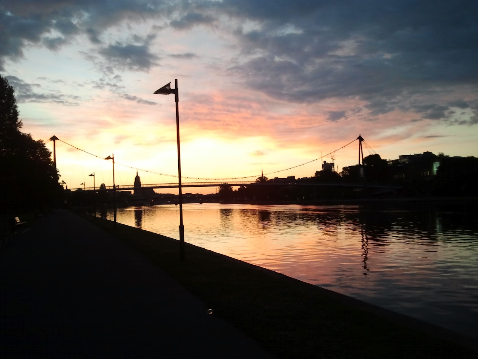 Biegaliśmy rundę wzdłuż rzeki, przebiegając dwa razy przez mosty i nie widać było zawodników biegnących po drugiej stronie. Cały czas zastanawiałam się gdzie jest Darek, jak mu się biegnie, jak mu poszło na rowerze. Pytałam kibicujące Kasię i Iwonkę czy widziały Darka, ale odpowiedziały, że nie. Widocznie biegł podobnym tempem i był cały czas po drugiej stronie rzeki, dlatego się nie spotkaliśmy.