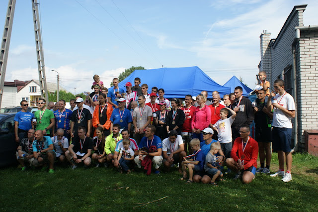 Za metą czekała na wszystkich najprzyjemniejsza część, bo oprócz przygotowanych przez żonę Piotrka makaronu i ciast, którymi uzupełnialiśmy węglowodanowe straty, były jeszcze rozmowy z dawno nie widzianymi koleżankami i kolegami oraz zakończenie imprezy połączenie z dekoracją zwycięzców i wszystkich uczestników. Kwiaty, puchary, medale pamiątkowe oraz upominki niespodzianki dla każdego.