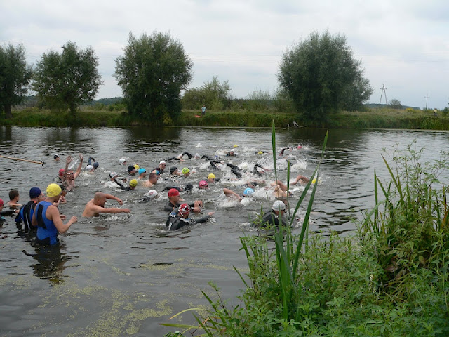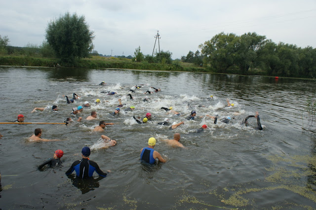 Dystans pływania krótki (700 m), jednak większość uczestników założyła pianki. Woda nie była zimna (21 st.) ale jednak można więcej zyskać niż stracić.
