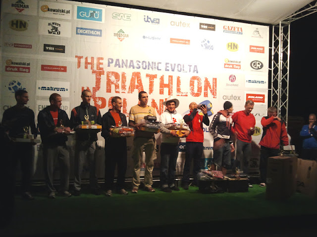 Potem na podium wychodzili zwycięzcy spośród uczestników połowy dystansu IM: po troje w kategoriach wiekowych wśród kobiet (brawa dla Luizy i Ani) i mężczyzn (tutaj triumfował Piotrek z Marysina oraz Kuba Bielecki, każdy oczywiście w swojej kategorii).