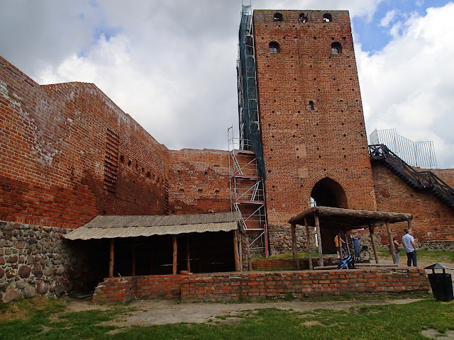 Gdy wreszcie osiągnęliśmy cel naszej podróży: zamek w Czersku, a właściwie to co po nim się zachowało, czyli część muru i trzy wieże, nie odmówiliśmy sobie przyjemności w postaci kolejnej przerwy na zwiedzanie. Tutaj spotkała nas kolejna nagroda: otóż w cenniku za wejście na dziedziniec zamku i dwie udostępnione wieże, widniała pozycja: „rowerzyści – bilet ulgowy”. Cóż za wspaniała informacja! Rowerzyści w Czersku są uprzywilejowaną grupą.