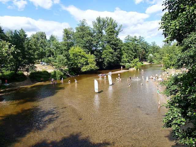 Pewnie sami chętnie byśmy tu zostali ochłodzić się nad rzeką, ale przed nami jeszcze kawałek do domu.  Zatem wsiadamy na rowery i jedziemy dalej. Nie było już tak lekko jak na początku, ale nikt się nie skarżył i nie było potrzeby korzystania z pociągu w ostatnim etapie powrotu do domu. To dobrze wróży kolejnej wycieczce. Tegoroczne lato stoi pod znakiem rowerowego zwiedzania Mazowsza.