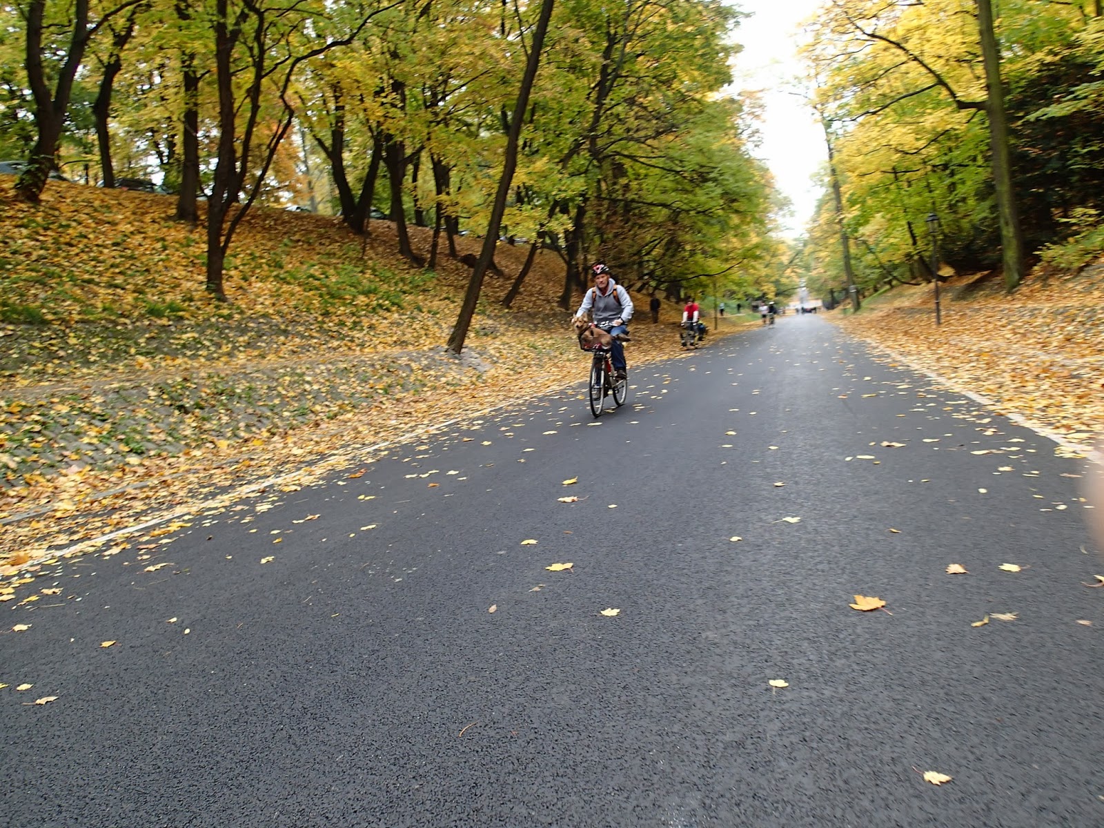 Po takiej nocy nie ma jak dobry spacer. My połączyliśmy ją z wycieczką rowerami. Jesień ciepła, miła, liście czarują swoimi kolorami. Nie to co spalone słońcem pola lawy na hawajskiej wyspie Kona, gdzie na trasie nie uświadczysz prawie zieleni, a gdzie dopiero żółci, pomarańczy, czy innych barw przyrody. Sami popatrzcie zresztą jak jest w naszych Łazienkach Królewskich jesienią.