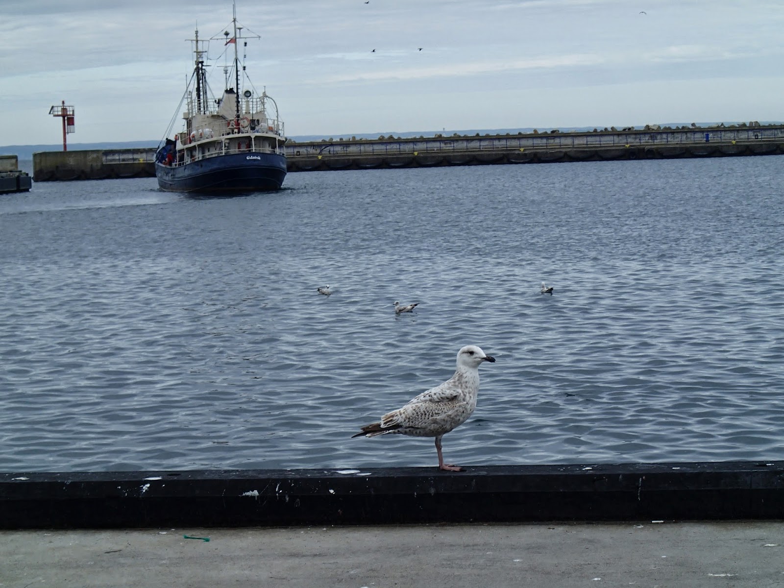 Poranny spacer wokół cypla helskiego pozwolił nam na odpoczynek i lekką regenerację po kilku intensywnych dniach rowerowania. Odwiedziliśmy także port gdzie w informacji turystycznej dowiedzieliśmy się, że statek albo dziś przypłynie albo nie, a najlepiej to sobie usiąść na falochronie i wyglądać czy już płynie. Kasa biletowa była jeszcze zamknięta więc faktycznie chyba nie pozostawało nam nic innego jak czekać w porcie.