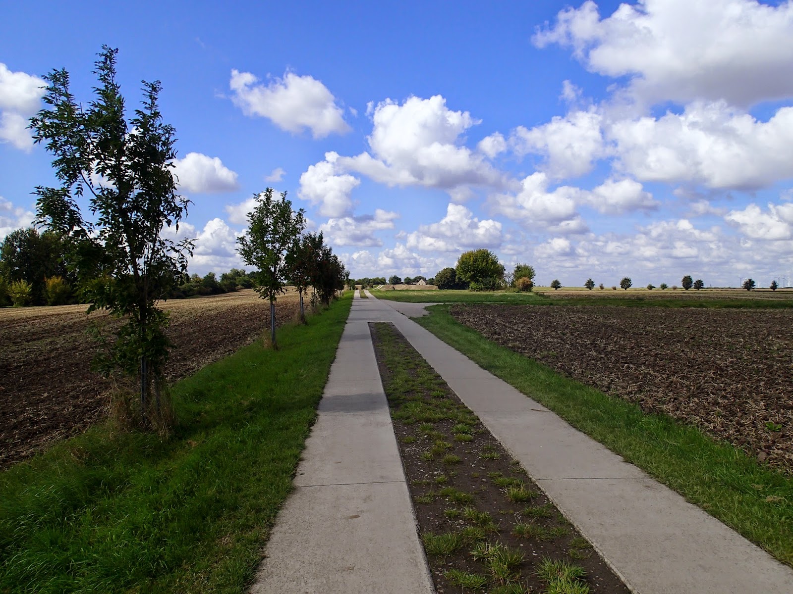 Jedzie się jeszcze dość przyjemnie nad rzeką i między polami. Ścieżki różnej jakości ale generalnie nie najgorsze.