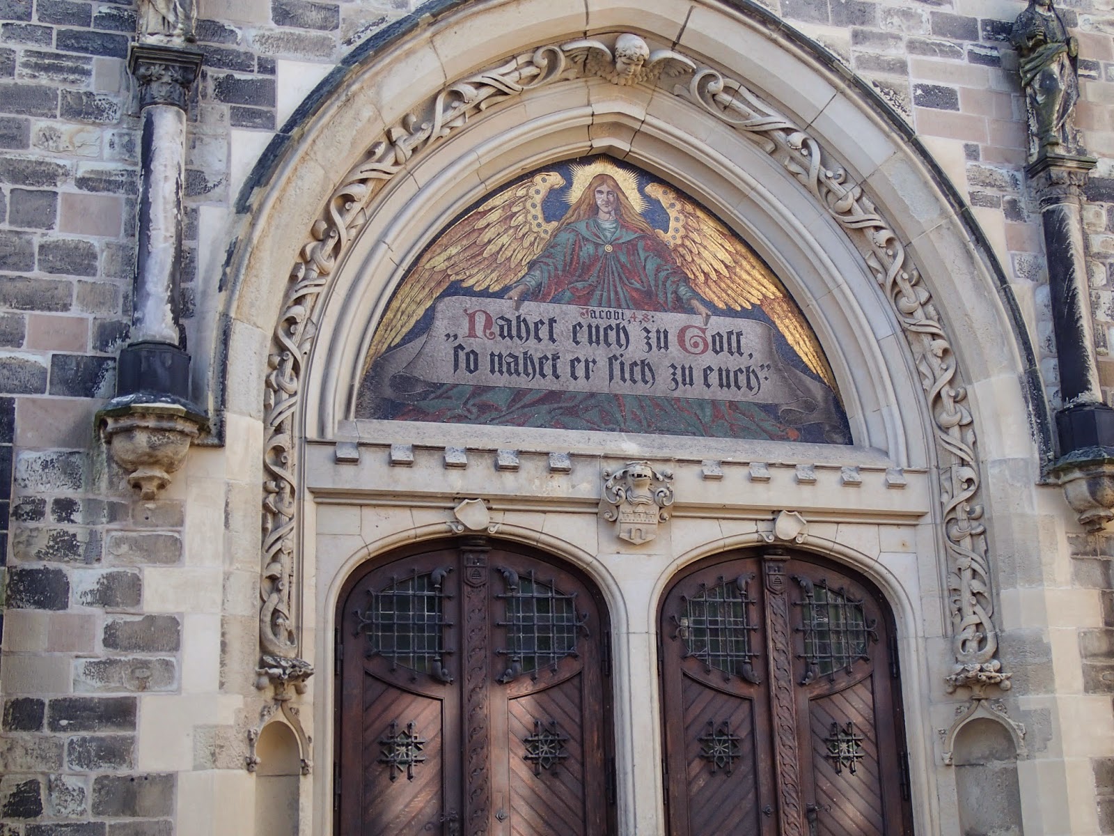 Kolejny nocleg kosztował nas trochę długiej wspinaczki po niewygodnej drodze, a potem karkołomnego zjazdu w ciemnym już lesie. Dobrze, że mieliśmy sprawne oświetlenie w rowerach i dobrą nawigację. Znalezienie ulicy i domu z pensjonatem też nie było kłopotem tylko musieliśmy trochę zboczyć z trasy R1. Drzwi otworzyła nam wysoka dziewczyna, rowery wstawiliśmy na podwórze domu, na które wchodziło się przez wielką i wysoką bramę jak do zamku krzyżackiego. Zresztą dom był stary i zbudowany kamienia jak wszystkie na tej ulicy. Pokój duży i wysoki, nawet lustro w łazience zawieszone wysoko, tak że tylko Darek mógł się w nim przejrzeć.
