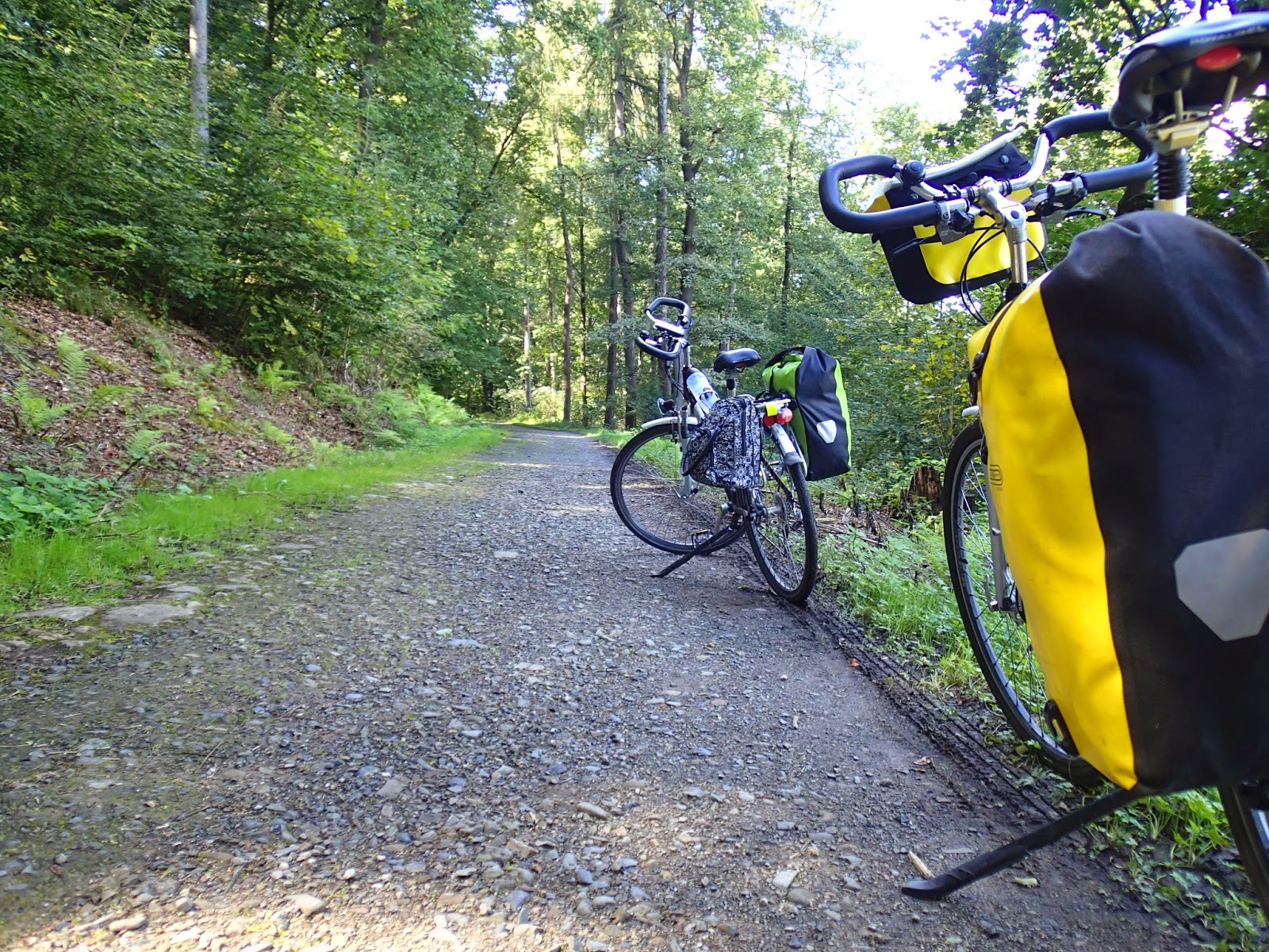 Z płaskich tras nad rzekami profil miejscami zaczyna być lekko pofałdowany. Ścieżki są coraz częściej tylko szutrowe, ale wszędzie nadal dobrej jakości i nawet na zjazdach można się rozpędzić bez uszczerbku dla rowerów, bagażu i nas samych. Jest też kilka męczących podjazdów. Za to na szczycie zaczynają się odkrywać ładne panoramy. Wjechaliśmy w Góry Harz. To chyba takie pagórki jak Góry Kocie, ale jazda rowerem z sakwami tyle kilometrów okazała się wyzwaniem.