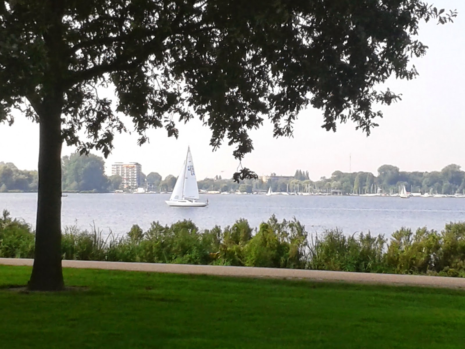 Na koniec dzisiejszej wycieczki po mieście pojechaliśmy nad pobliskie jezioro w Kralingen, gdzie mieszkańcy odpoczywają. W parkach grupy starszych i młodszych dzieci miały zorganizowane zajęcia na świeżym powietrzu, ludzie biegali, spacerowali z psami, jeździli rowerami, konno, plażowali lub pływali żaglówkami.