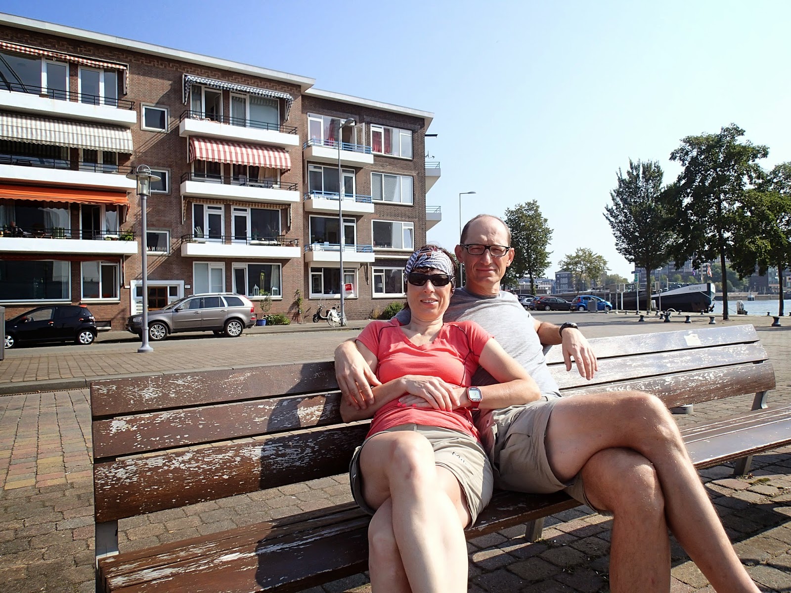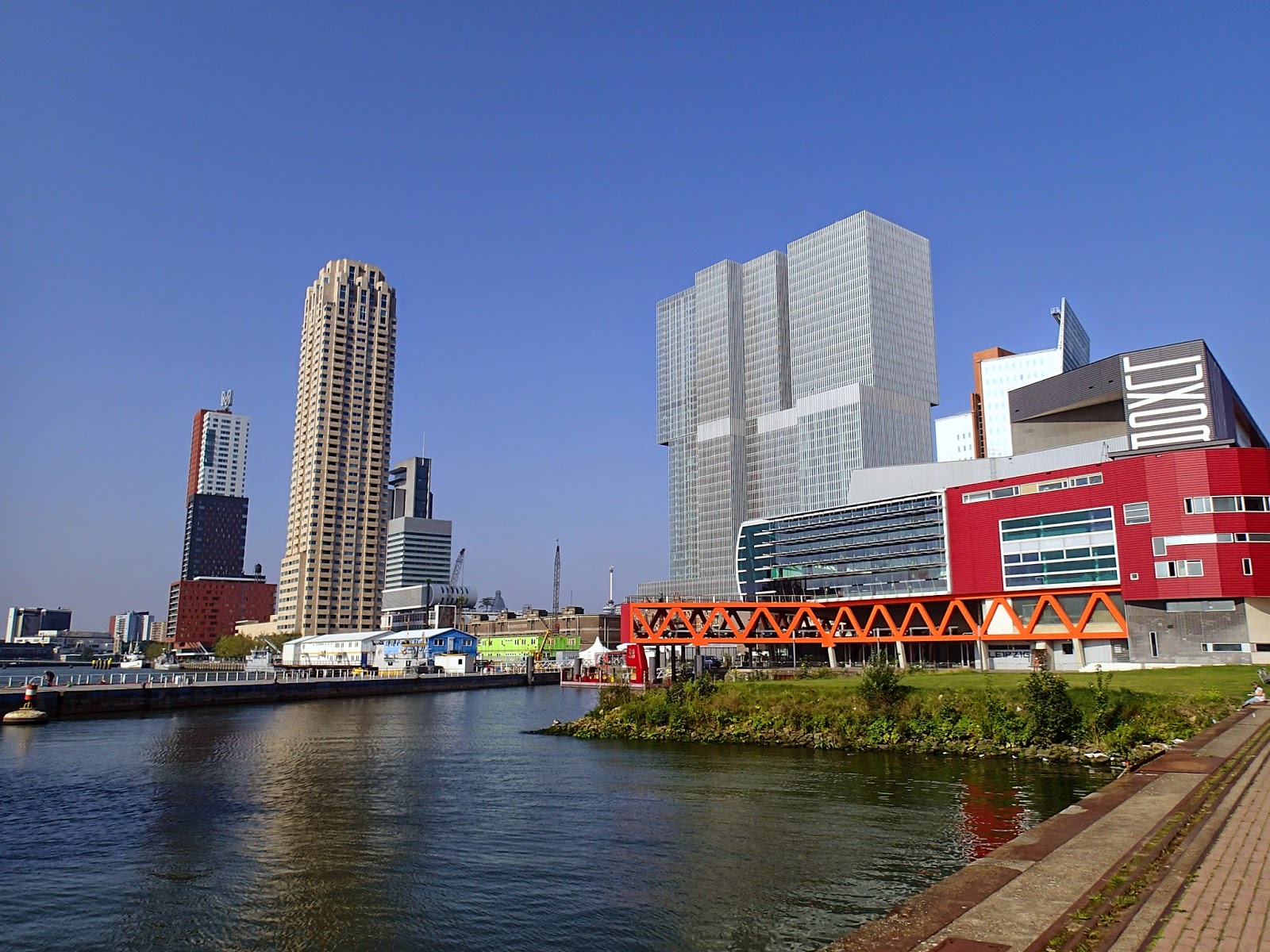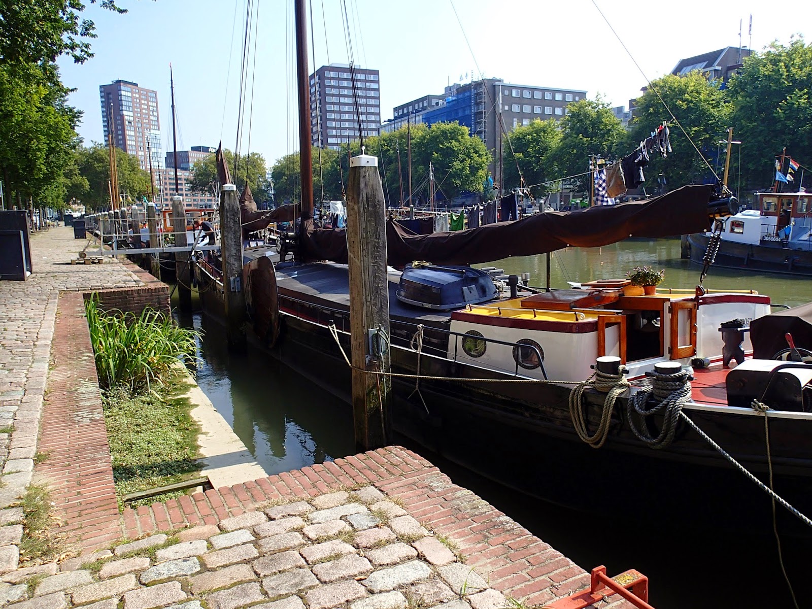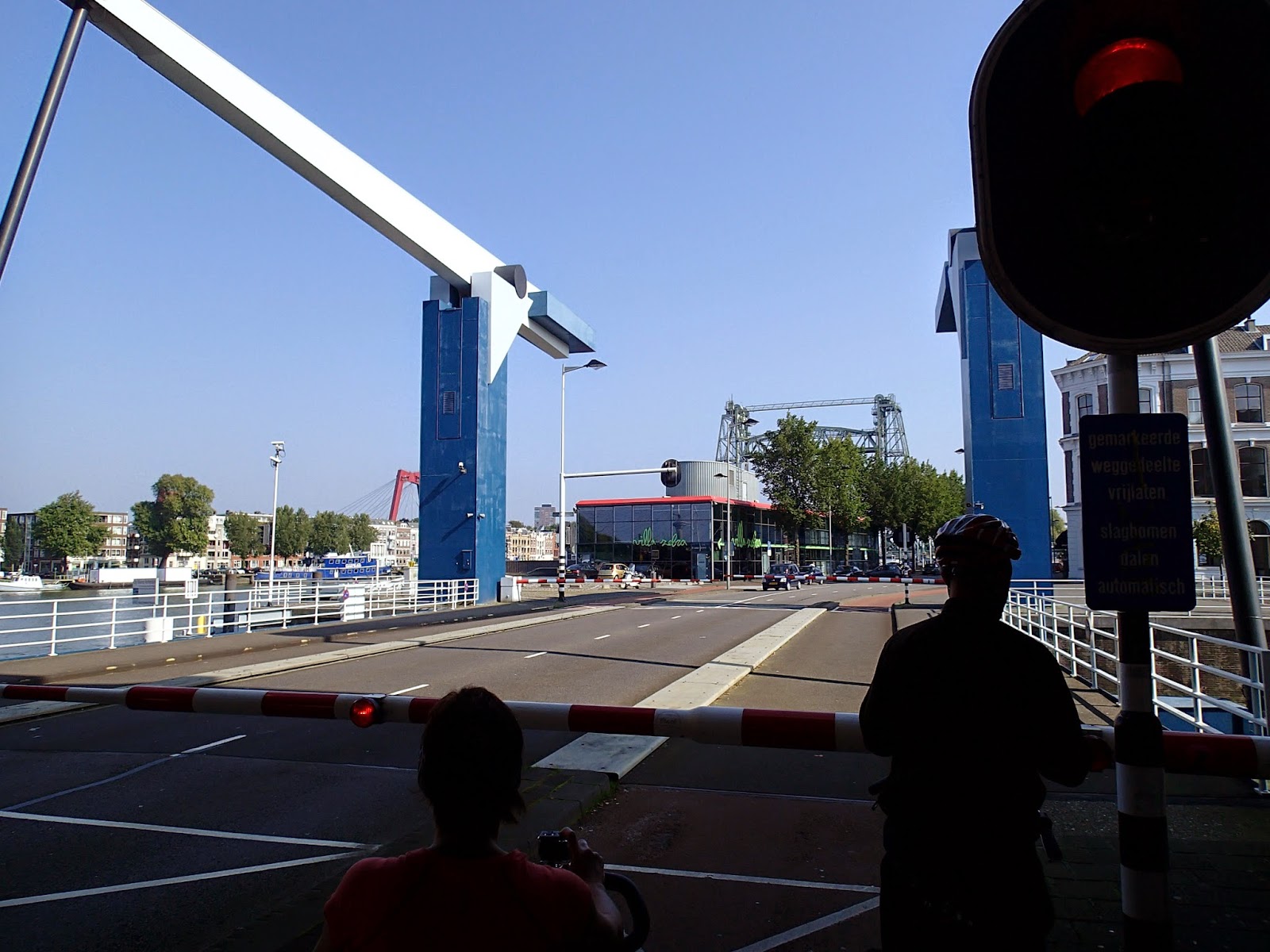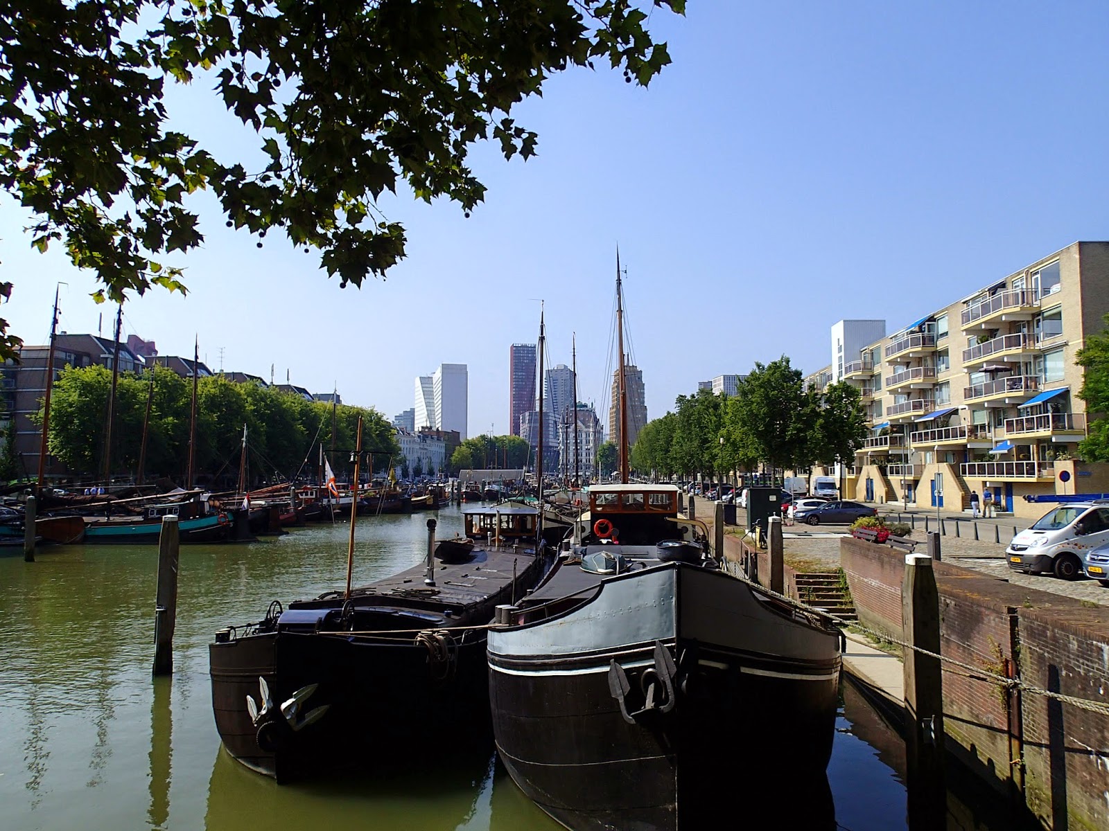 Byliśmy w pobliskim parku obok Euromast (wieży widokowej – najwyższa budowla w Rotterdamie), potem przejechaliśmy dwa najbardziej charakterystyczne mosty, w tym Erasmursburg, będący wizytówką Rotterdamu oraz byliśmy na wyspie. Wyspa jest nieco spokojniejsza, nie ma tam zbyt dużego ruchu i jest to raczej taka część mieszkalna ze starymi kamienicami. Potem odwiedziliśmy stary port, gdzie w przycumowanych barkach mieszkają ludzie, bo widzieliśmy suszące się pranie i powystawiane na pokład stoliki i krzesła.