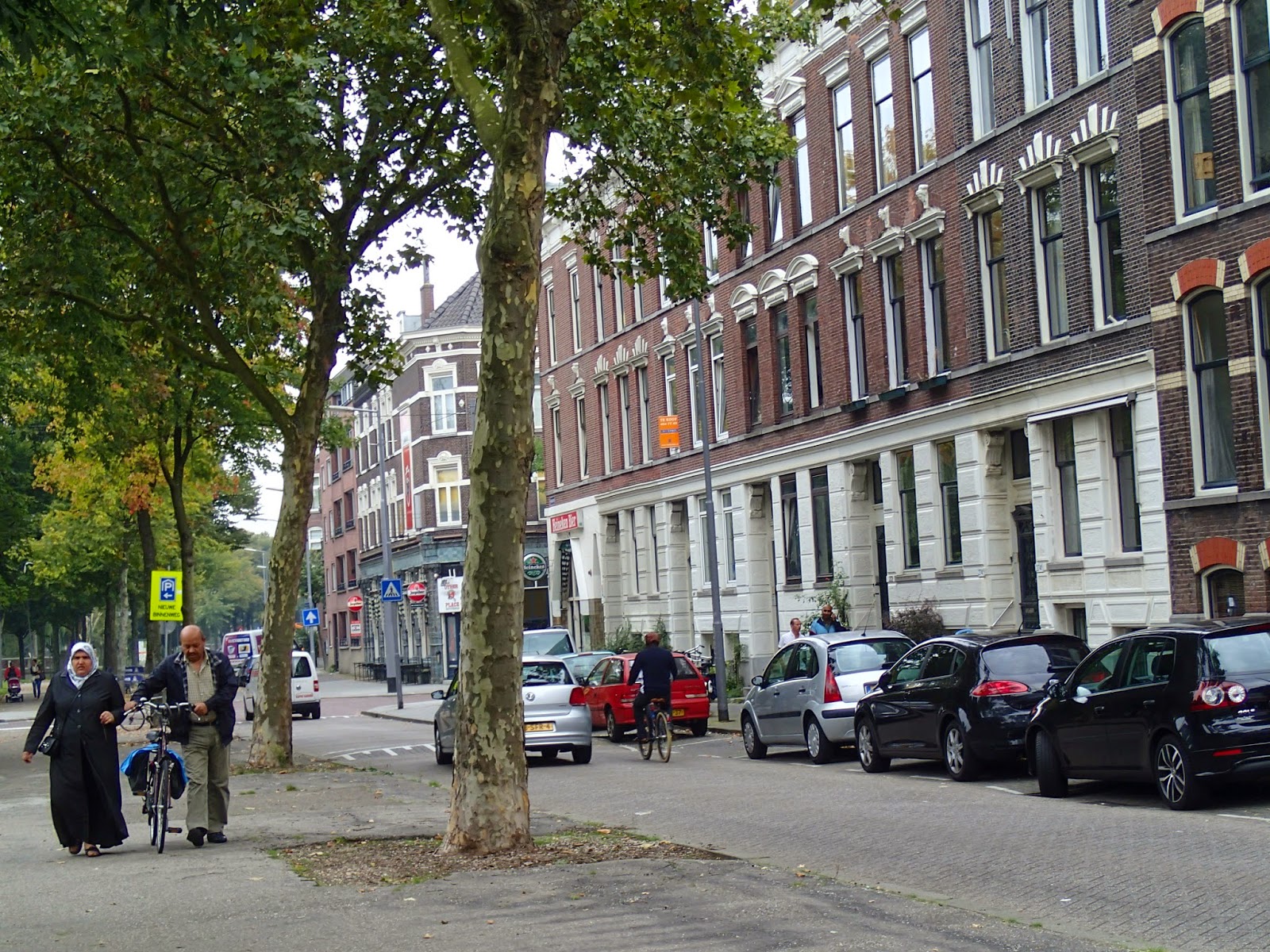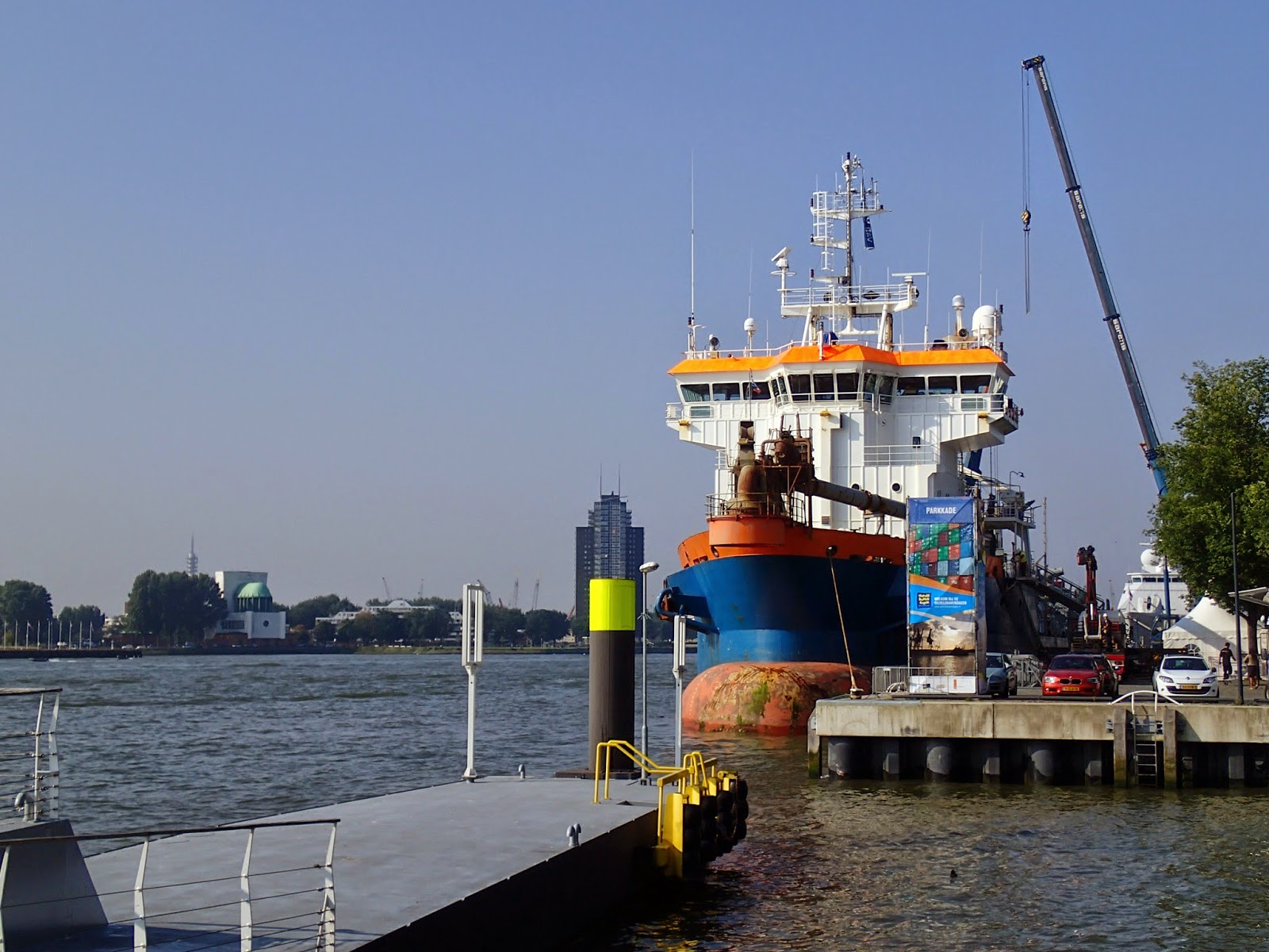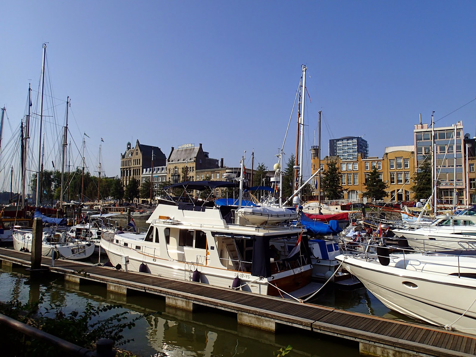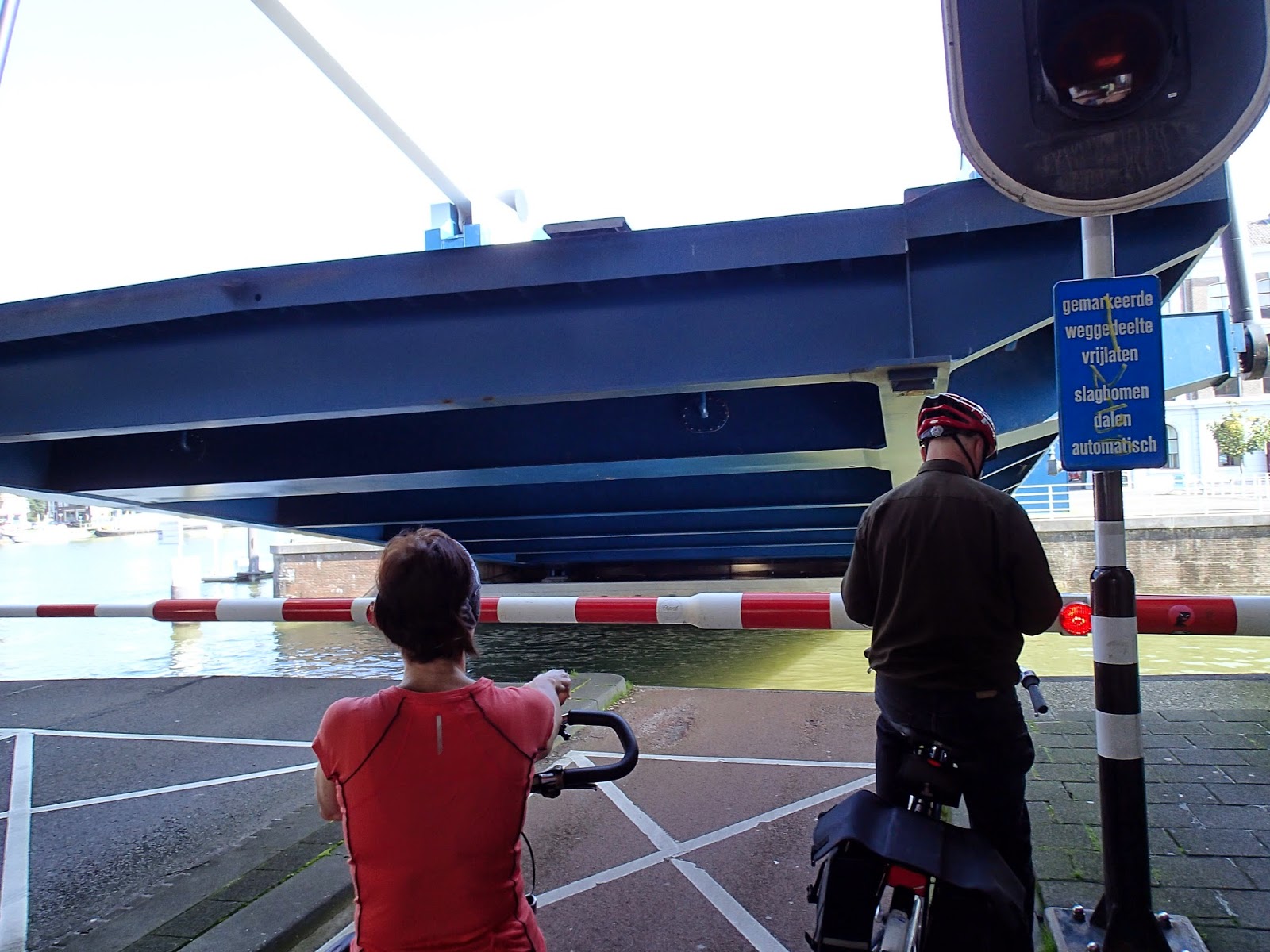 Byliśmy w pobliskim parku obok Euromast (wieży widokowej – najwyższa budowla w Rotterdamie), potem przejechaliśmy dwa najbardziej charakterystyczne mosty, w tym Erasmursburg, będący wizytówką Rotterdamu oraz byliśmy na wyspie. Wyspa jest nieco spokojniejsza, nie ma tam zbyt dużego ruchu i jest to raczej taka część mieszkalna ze starymi kamienicami. Potem odwiedziliśmy stary port, gdzie w przycumowanych barkach mieszkają ludzie, bo widzieliśmy suszące się pranie i powystawiane na pokład stoliki i krzesła.