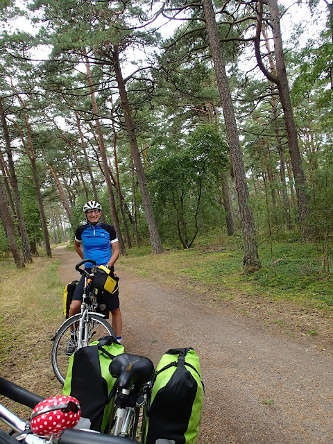 Zamiast pojechać naszą trasą, pojechaliśmy tak jak prowadziła ścieżka rowerowa, a więc przez las, gdzie były borówki, a poza tym las przypominał trochę naszą Maryśkę.