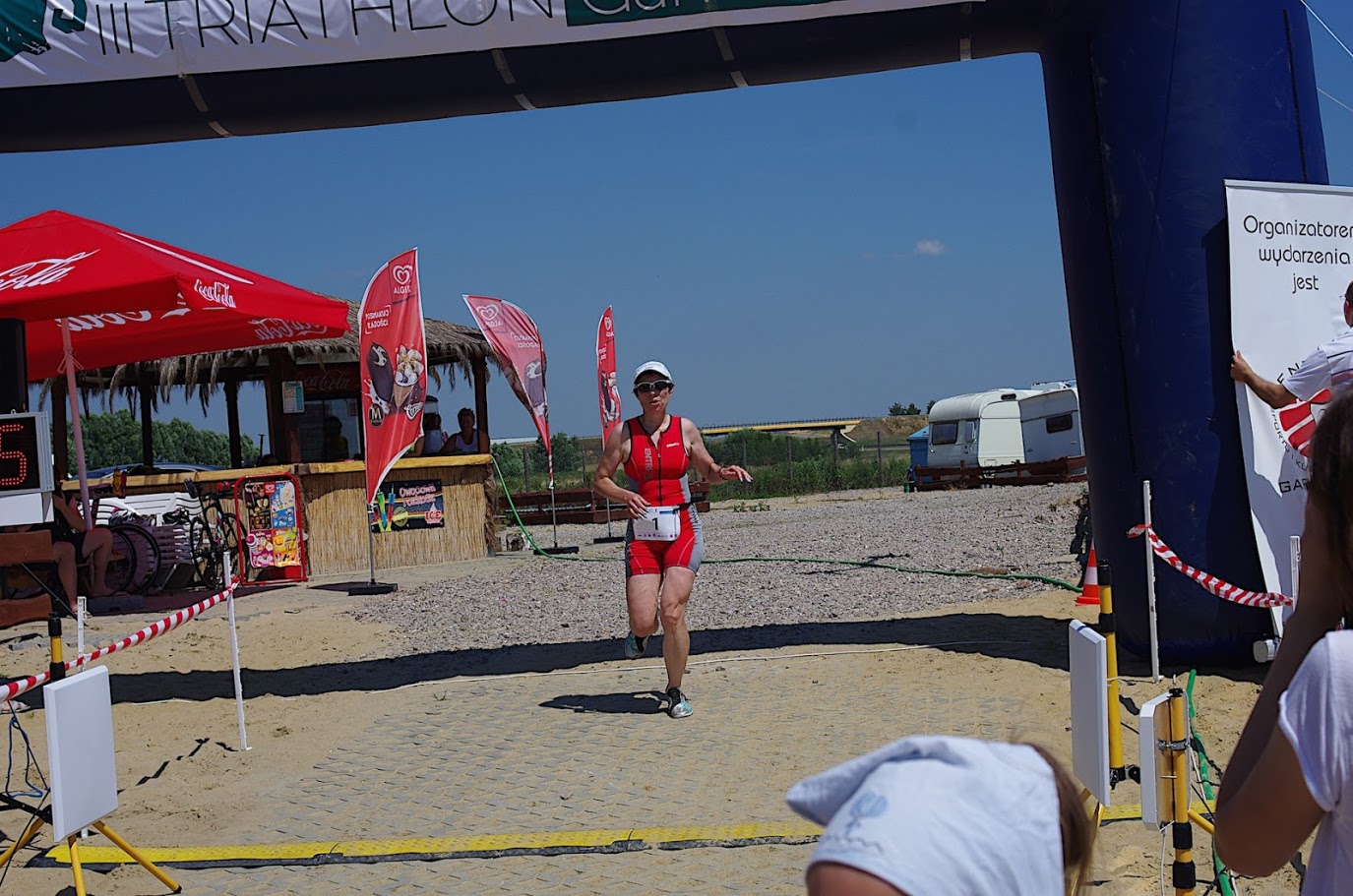 W dzień startu (2 lipca) było znów upalnie, więc zdecydowaliśmy się płynąć bez pianki. Rowerem pojechałam nieco za wolno, mogłam nieco docisnąć, bo była bardzo przyjemna trasa po równym asfalcie, ale jakoś tak zapomniałam się, że to są zawody 😉 Najtrudniej było na biegu. Gorąco, duszno i choć krótko, to te 5 km dało wszystkim w kość.