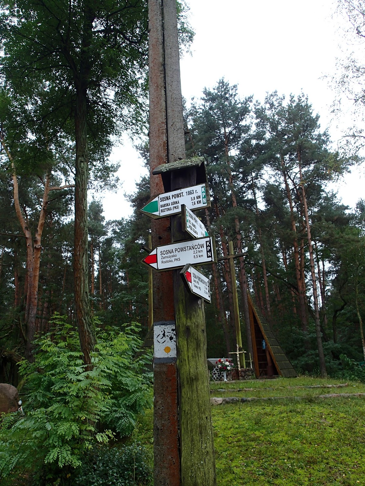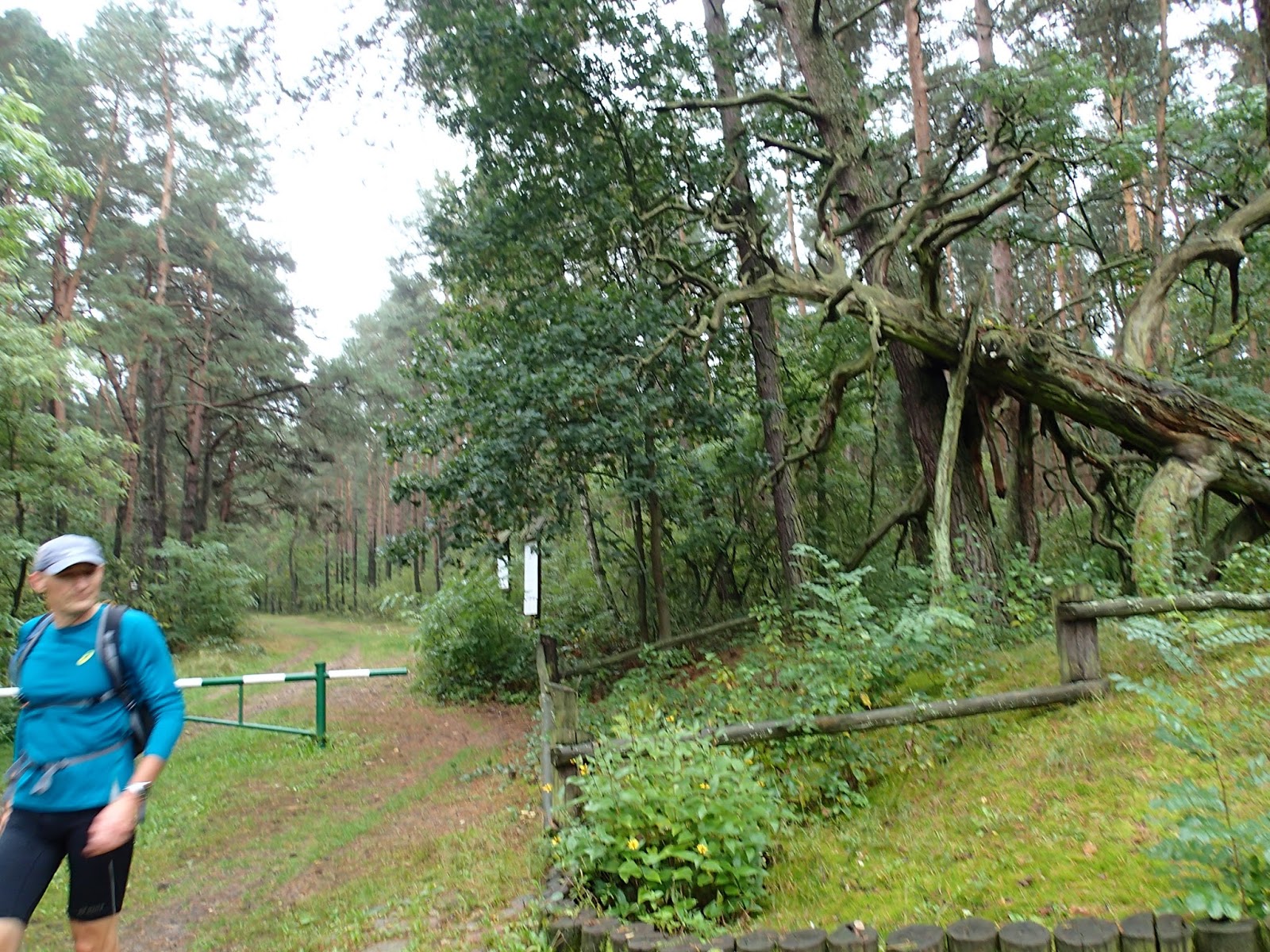 Przy sośnie powstańczej nie zatrzymujemy się, bo w zasadzie nie ma potrzeby odpoczywać skoro nasze tempo nie jest zbyt mocne. Nasz marszobieg daje wystarczająco długie przerwy marszu na uspokojenie oddechu, napicie się (Darek zrobił przepyszny izotonik z dodatkiem nawłociowego miodu i cytryny), czy zjedzenie ironbatonika (to też wyrób Darka o sekretnym składzie i zastrzeżonej recepturze przygotowywania).