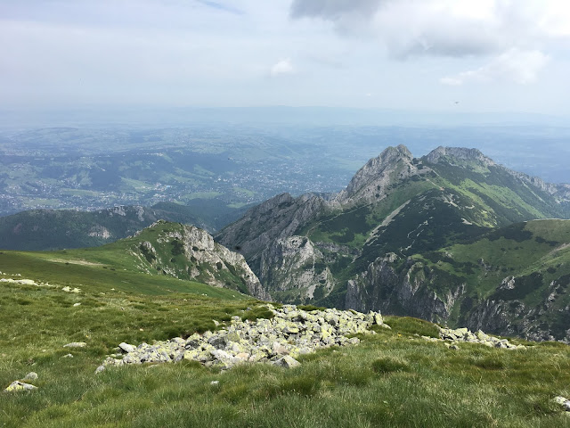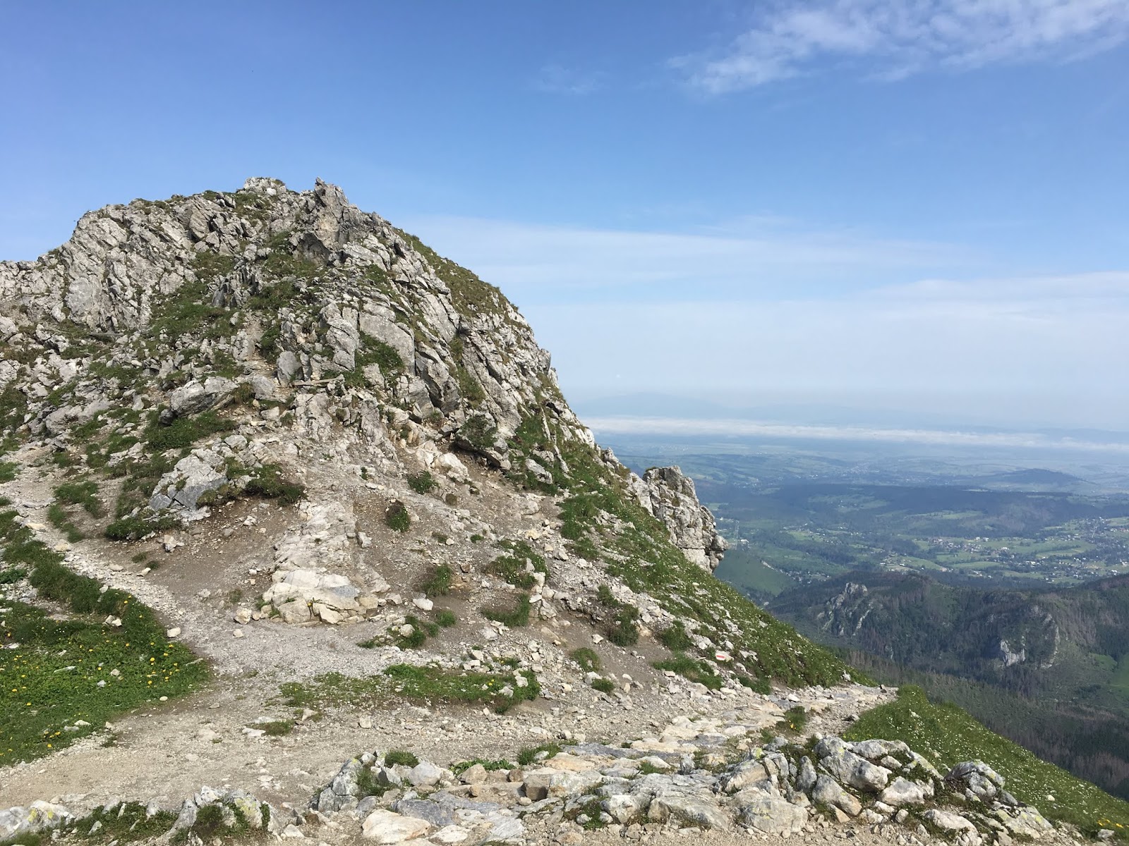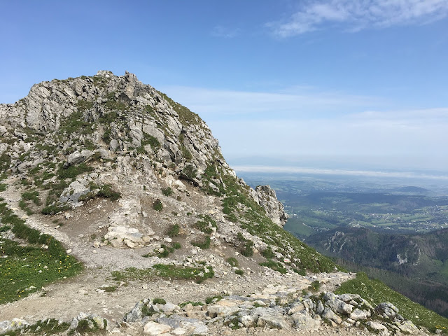 Nie udało się nam pokontemplować widoków na szczycie w zupełnej ciszy, a pośród ludzi to już nie to samo. Zatem schodzimy w dół niebieskimi znakami, mijając po naszej prawej ręce Giewont widoczny tutaj z zupełnie innej strony.