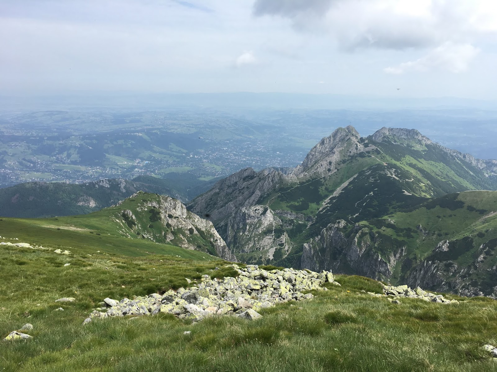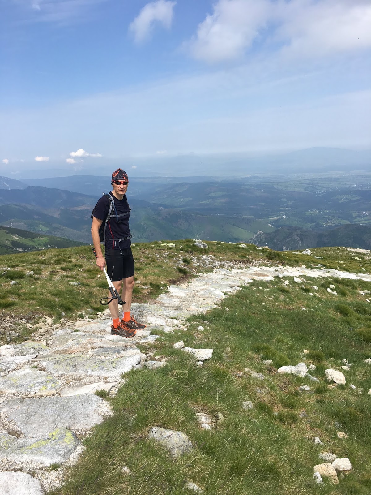 O ile na Krzesanicy było jeszcze kilka pojedynczych osób, to na widokowym Małołączniaku już całe grupy. Mijali nas jeszcze biegacze, zwracający uwagę nieco innym strojem i sprzętem. Mowa o biegających z małymi plecaczkami górskimi i w sportowych lekkich butach do biegania w trudnym terenie, zamiast skórzanych butów trekingowych sznurowanych za kostkę i obowiązkowych grubych wełnianych podkolanówkach.