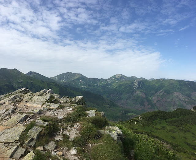 Gdy wreszcie oderwałam wzrok od skalnego chodnika ścieżki, przy której wciąż pojawiały się nowe rośliny wysokogórskie, zobaczyłam, że odsłonił się widok na okoliczne szczyty.