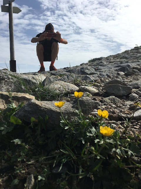 W końcu nawet Darkowi udziela się mój zachwyt nad tatrzańską roślinnością i zauważa obiekty do fotografowania. Gdzieś nawet na tym odcinku wypatrzyłam kwiaty szarotki, ale jeszcze niezbyt okazałe. Z wrażenia, że to roślina rzadka i pod ochroną, nawet jej nie zrobiłam zdjęcia, ale uwierzcie mi, że tam rosła. Jak będę następnym razem, albo ktoś się tam wybiera, to na zielonym między Czerwonym Żlebem, a Chudą Przełączką na pewno można wypatrzeć szarotkę, symbol góralskich zdobień i ornamentów.