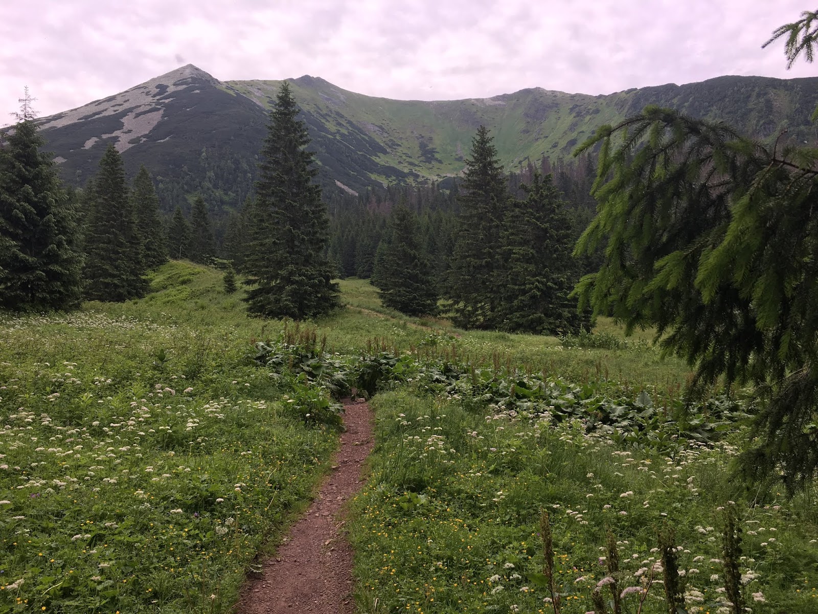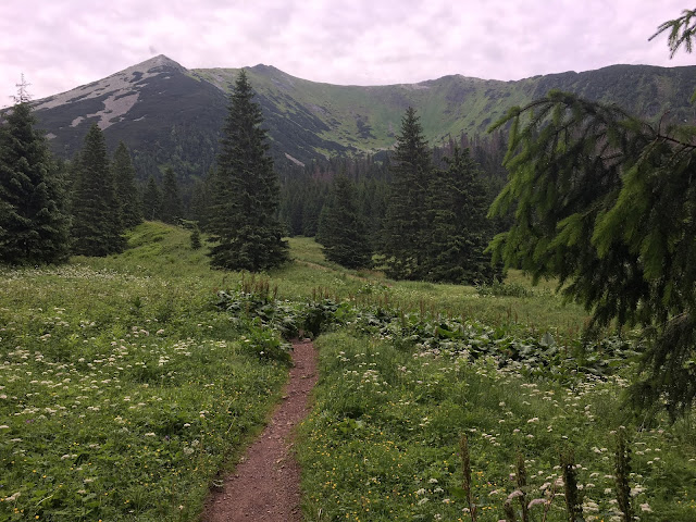 Po dojściu do Chudej Przełączki czekało nas mozolne podejście na Ciemniaka. Słońce grzało już solidnie, pot spływał mi po twarzy, ale szliśmy wytrwale do góry. Dopiero tutaj minęliśmy pierwszych piechurów na trasie. Wtedy zdałam sobie sprawę , jak było do tej pory cudownie z wszechogarniającą ciszą. Nie było żadnego szumiącego potoku, żadnego wiatru i żadnych obcych dźwięków. To było jak nierealne: tylko góry, kwiaty i my we dwoje. Uwielbiam takie wycieczki.