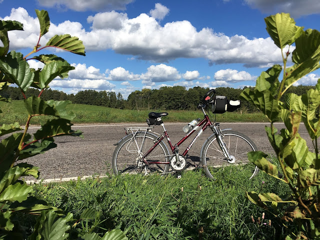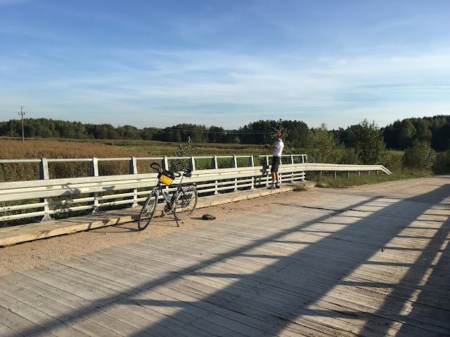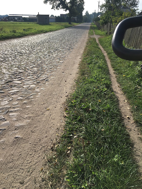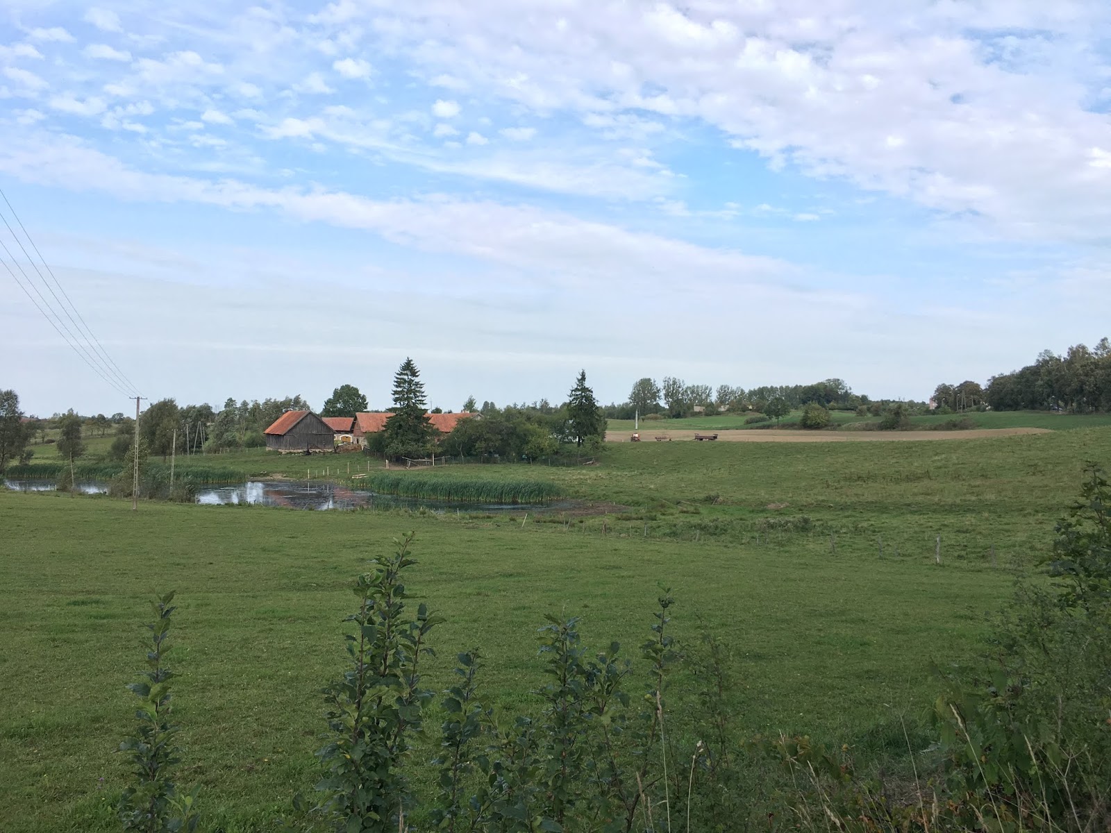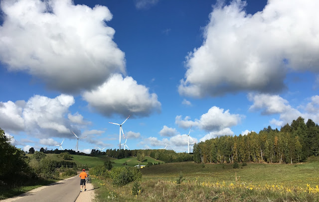 Ta trasa tuż za Suwałkami pokazała swoje polodowcowe oblicze w całej okazałości. Liczne pagórki, pola z głazami narzutowymi, ale też pięknie zagospodarowane tereny, co razem tworzyło malowniczy krajobraz. Dodatkowego kolorytu dostarczały wyjątkowo ładne tego dnia chmury. Dzień był słoneczny, ale też wietrzny.