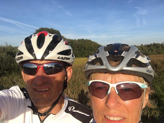 Koniec wakacji nie nastąpił wcale z końcem sierpnia, bo przecież lato trwało i wcale nie miało zamiaru myśleć o zamianie z jesienią. A może w tym roku jesieni nie będzie? Tak jak nie było wiosny, bo od razu po zimie zaczęło się w kwietniu lato. Wiadomo już od dawna, że mamy anomalie pogodowe spowodowane zmianami klimatycznymi. Tak więc, widząc prognozy dosyć ciepłych i słonecznych dni postanawiamy krótkim, ale intensywnym akcentem zakończyć nasze wakacje, choć to już połowa września. Wybrany kierunek to północno-wschodni róg Polski z bazą w Augustowie. Zaplanowane przez Darka 4 wycieczki rowerowe wymagają rowerów trekingowych. Nie dlatego, że trasy będą w trudniejszym terenie, ale dlatego, że na mapie nie są zaznaczone nawierzchnie dróg, po których mamy jechać. A nasze trekingi nawet obładowane sakwami już różne trasy pokonały i są jak maszyny, jak to powiedział jeden pan oglądając nasze rowery i potem spoglądając na swój zardzewiały i rozklekotany „składak”.