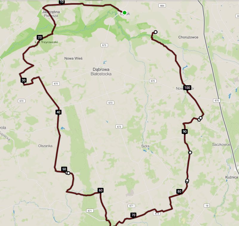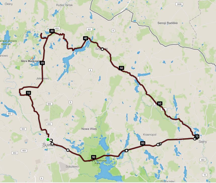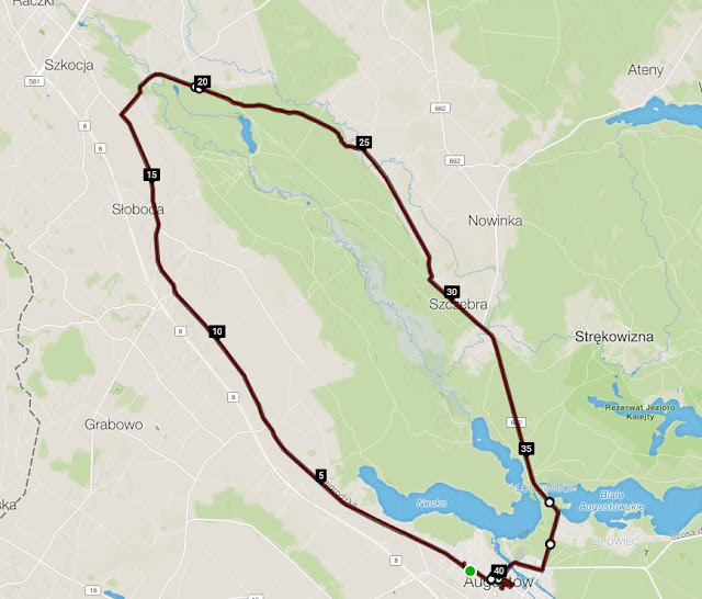 Trasa 2. – 16 września 2018 r. (piękna wycieczka z chmurami, pagórkami – 10% uphill w Żywej Wodzie, jeziora i 30 km DDR z Sejn do Suwałk)