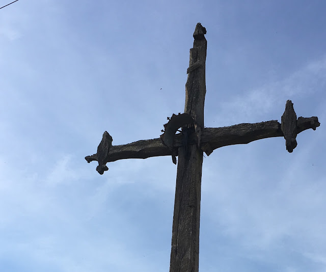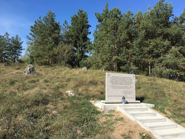 To wzgórze z wystającymi do połowy kamieniami to stary cmentarz choleryczny. Z tablicy dowiadujemy się, że w tej okolicy panowała w 18 wieku epidemia cholery. Wolimy na wszelki wypadek oddalić się jak najszybciej, zwłaszcza, że było już gorąco, a my nie mieliśmy zbyt dużo picia. Musimy poszukać kolejnego sklepu.