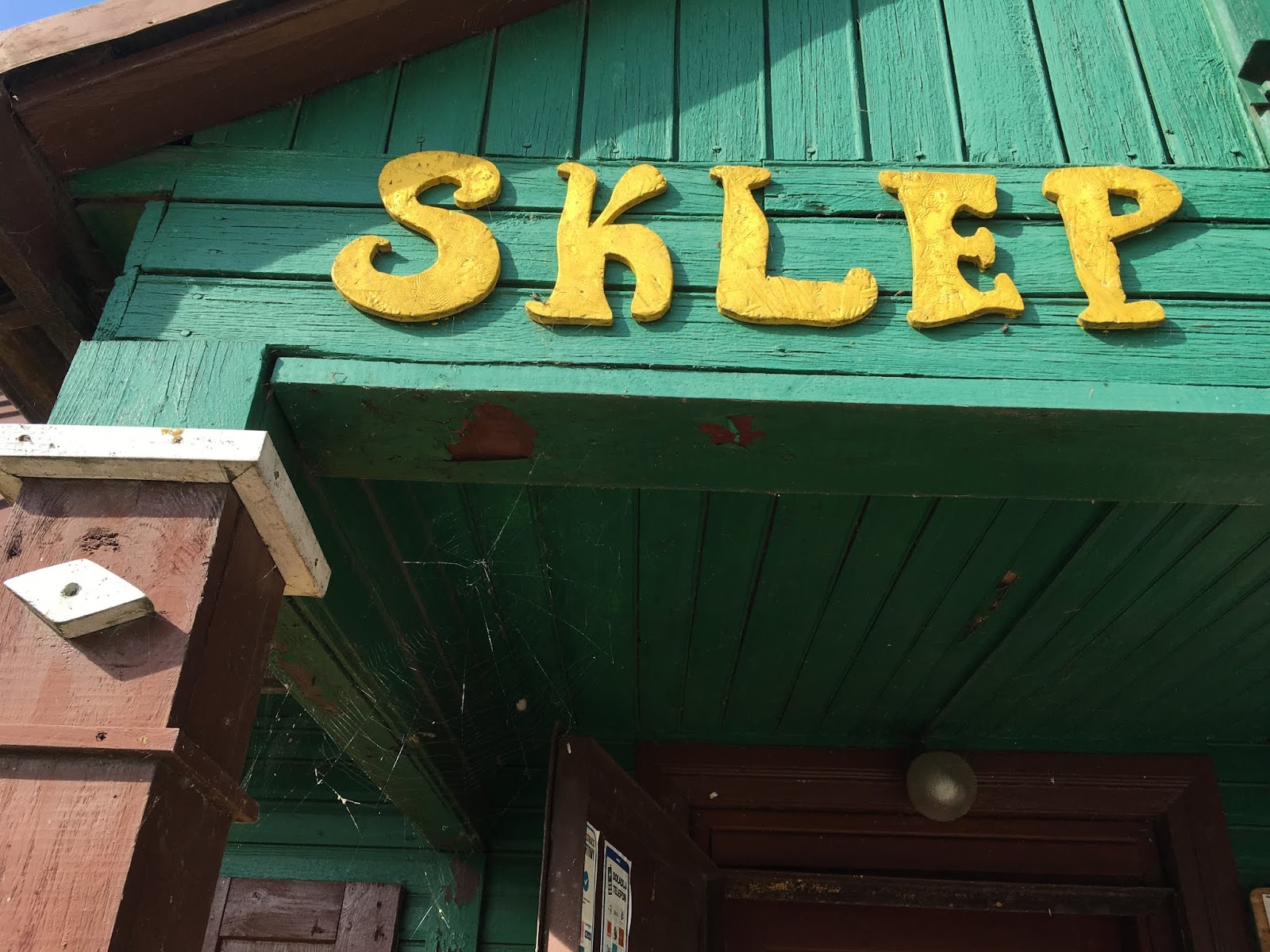 W pierwszym napotkanym sklepie w pięknym drewnianym budynku robimy krótką przerwę na lody. Nie jesteśmy jeszcze głodni, ale miejsce jest tak ładne, że z chęcią siadamy na ławeczce przy sklepie.