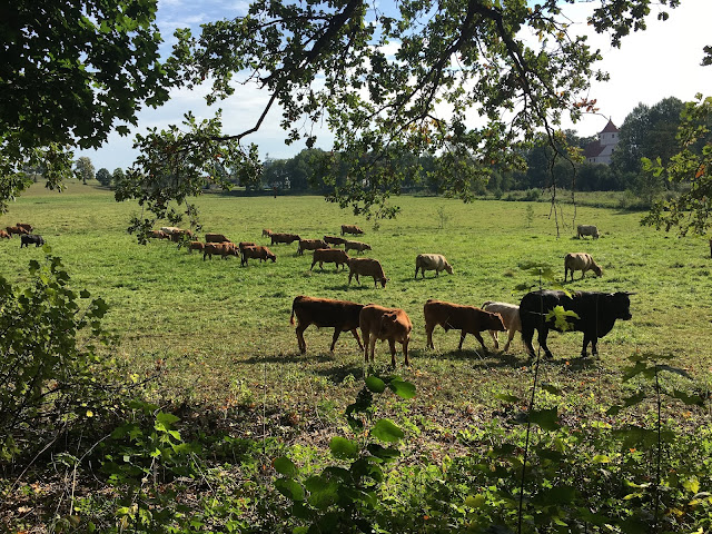 Te krowy były trochę inne od tych, które widywaliśmy do tej pory. Brązowe, o innym kształcie rogów i sylwetce. Raczej nie były to krowy mleczne, które w Dolinie Rospudy w każdym gospodarstwie można było zobaczyć jako stada krów dających mleko z Podlasia.