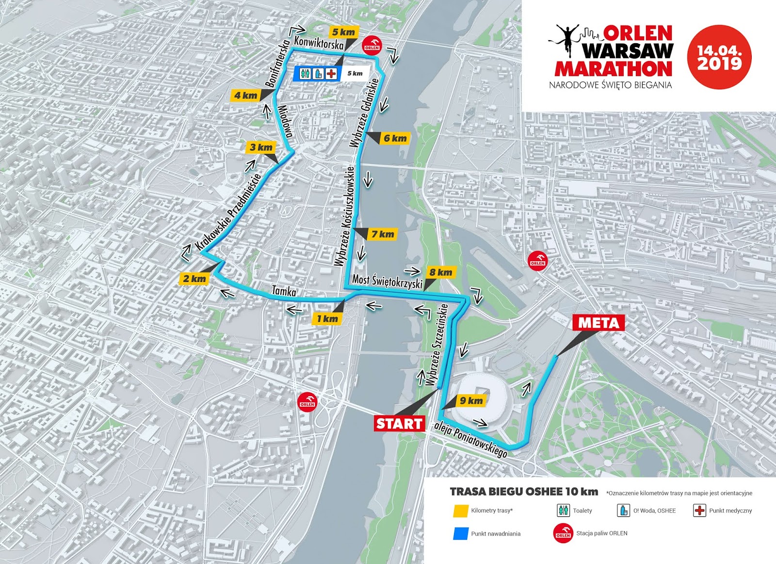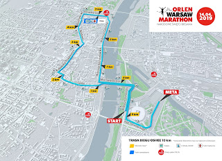 Dlatego pamiętajcie, nie zapisuje się na bieg jeśli nie znacie trasy. I nie chodzi o fakt nieznajomości topografii miasta, czy rodzaju nawierzchni, choć ta ze względów taktycznych może być przydatna, ale chodzi o czas podania informacji o przebiegu trasy dla uczestników. Nie dajcie się wpuścić w bieg pod górkę. Niby każdy mieszkaniec Warszawy wie, że jest skarpa nadwiślańska i jest to wiadomość znana nie od dziś, ale przecież zawsze biegaczy można tak poprowadzić żeby nie musieli się wspinać na nią i to kilka razy. Jak do tego przygrzeje słoneczko, to jesteśmy ugotowani na miękko. Wszyscy, niezależnie od tego czy biegną na 10 czy na 42 km. To tylko różnica tempa, czasu i w przypadku tej stołecznej imprezy z logiem Orlen na numerze startowym, oczywiście ilości metrów przewyższenia do pokonania.
