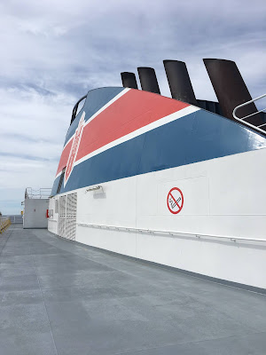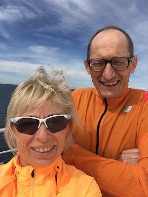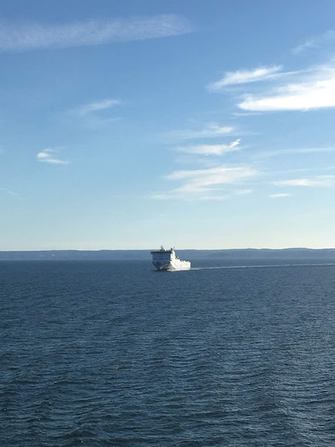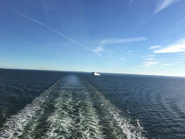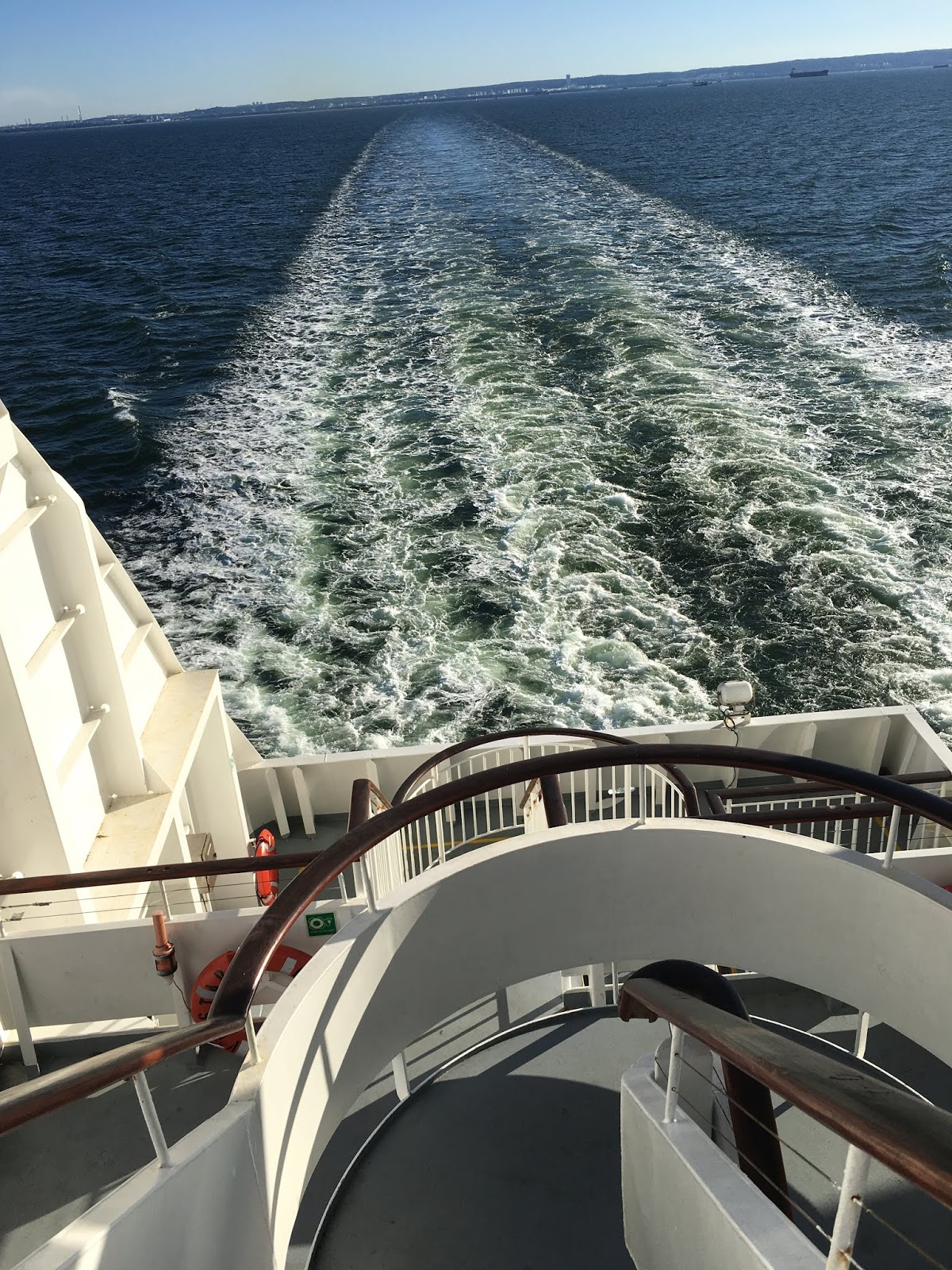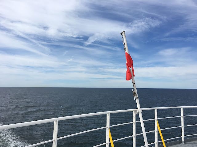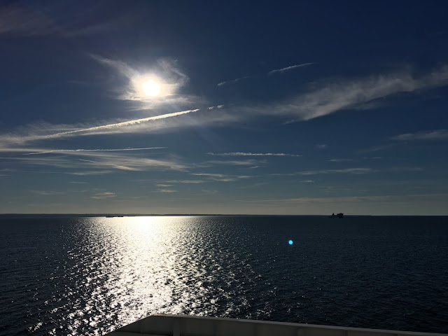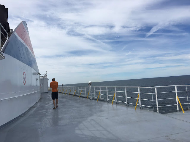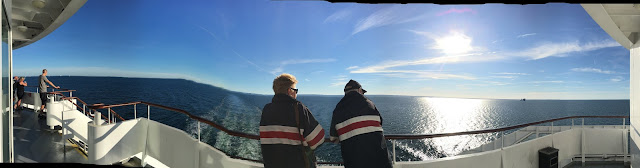 Bałtyk jest spokojny, prom sunie statecznie bez bujania, więc jakoś wytrwamy do rana ciesząc się dobrą pogodą i wolno płynącym czasem.