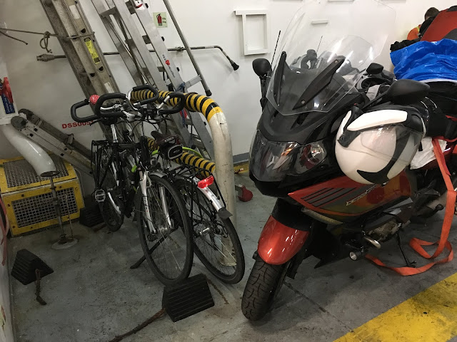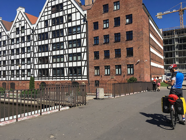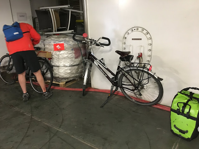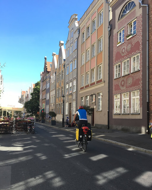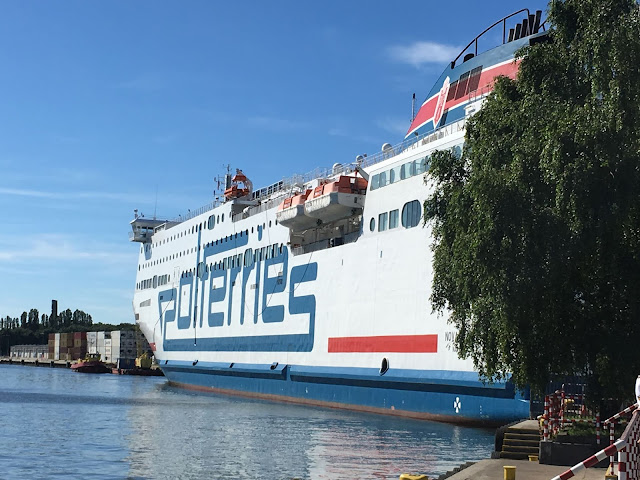 Jest za to w Trójmieściu dużo dobrej jakości ścieżek rowerowych i można jeździć wąskimi uliczkami jednokierunkowymi pod prąd „na legalu” bo pod znakami drogowymi są napisy „nie dotyczy rowerów”. Piękną DDR-ką dojechaliśmy bez problemu do samego terminalu promowego. Prom już na nas czekał.