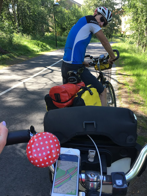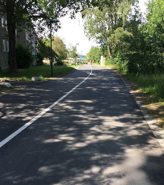 Żeby nie było wątpliwości. Przed Sztokholmem jedziemy drogą tylko dla ruchu pieszo-rowerowego. Tutaj nie ma prawa jeździć żaden samochód. Coś co w Polsce występuje w szczątkowych ilościach i jest szumnie nazywane Drogą Dla Rowerów, tutaj ciągnie się kilometrami. A na przedmieściach Sztokholmu zamienia się w rowerową autostradę służącą do transportu rowerowego dla mieszkańców do sklepu, pociągu, szkoły albo w celach rekreacyjnych. Dzięki temu jest tu cicho i spokojnie. Mogą jeździć dzieci i całe rodziny.