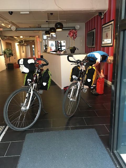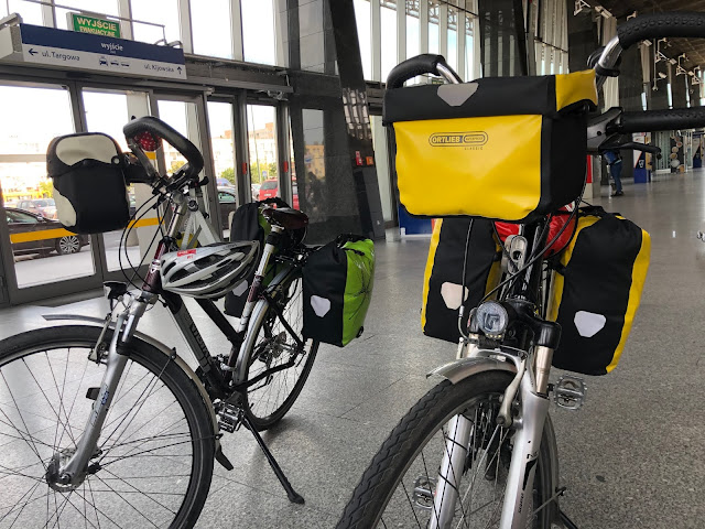 Gdy wybraliśmy drogę morską do Finlandii to początek naszej podróży z Mazowsza rozpoczął pociąg z Warszawy do Gdańska. Obydwa dworce nie mają ułatwień dla rowerów, więc nie jest to wycieczka dla każdego. Trzeba wykazać się sporą dozą cierpliwości i oczywiście siły fizycznej aby wnieść rower po schodach. A nasze rowery trekingowe nawet bez sakw do lekkich nie należą.