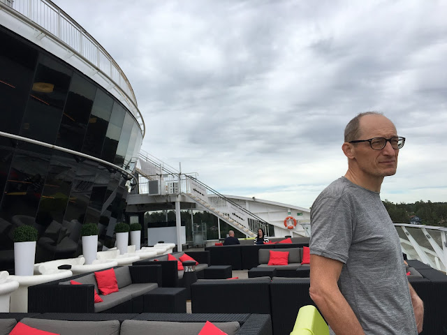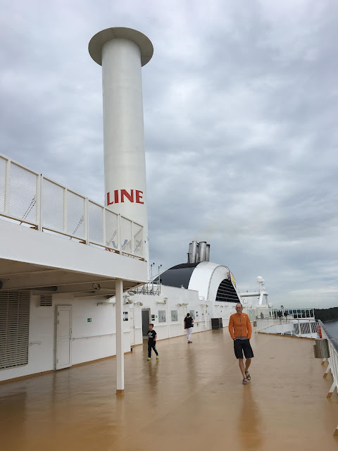 Zarezerwowaliśmy kabinę, co było bardzo dobrym pomysłem, bo mogliśmy komfortowo spędzić czas. Wzięliśmy prysznic i przebraliśmy aby móc pozwiedzać kolejne pokłady promowe. A było gdzie chodzić i co robić. Przez resztę podróży (do Turku płynęliśmy prawie cały dzień) nadrabialiśmy zaległości czytelnicze i podziwialiśmy widoki z górnego pokładu.