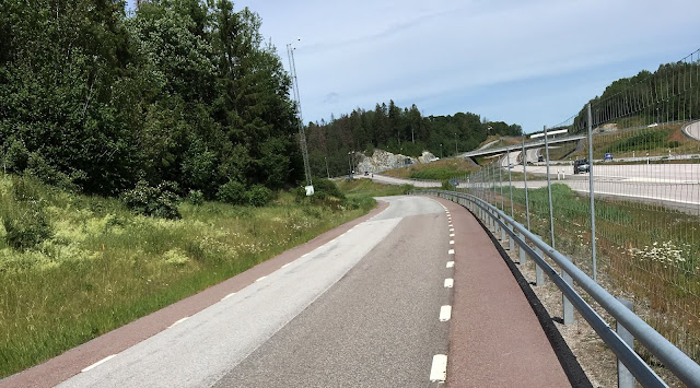 Tu już jedziemy szwedzką ścieżką rowerową z portu w Nynashamn do Sztokholmu. 62 km takiej dobrze oznakowanej i bezpiecznej drogi dla rowerów. Ruch samochodowy jest niewielki, bo to droga pomocnicza obok autostrady, a potem lokalna zupełnie nieuczęszczana.