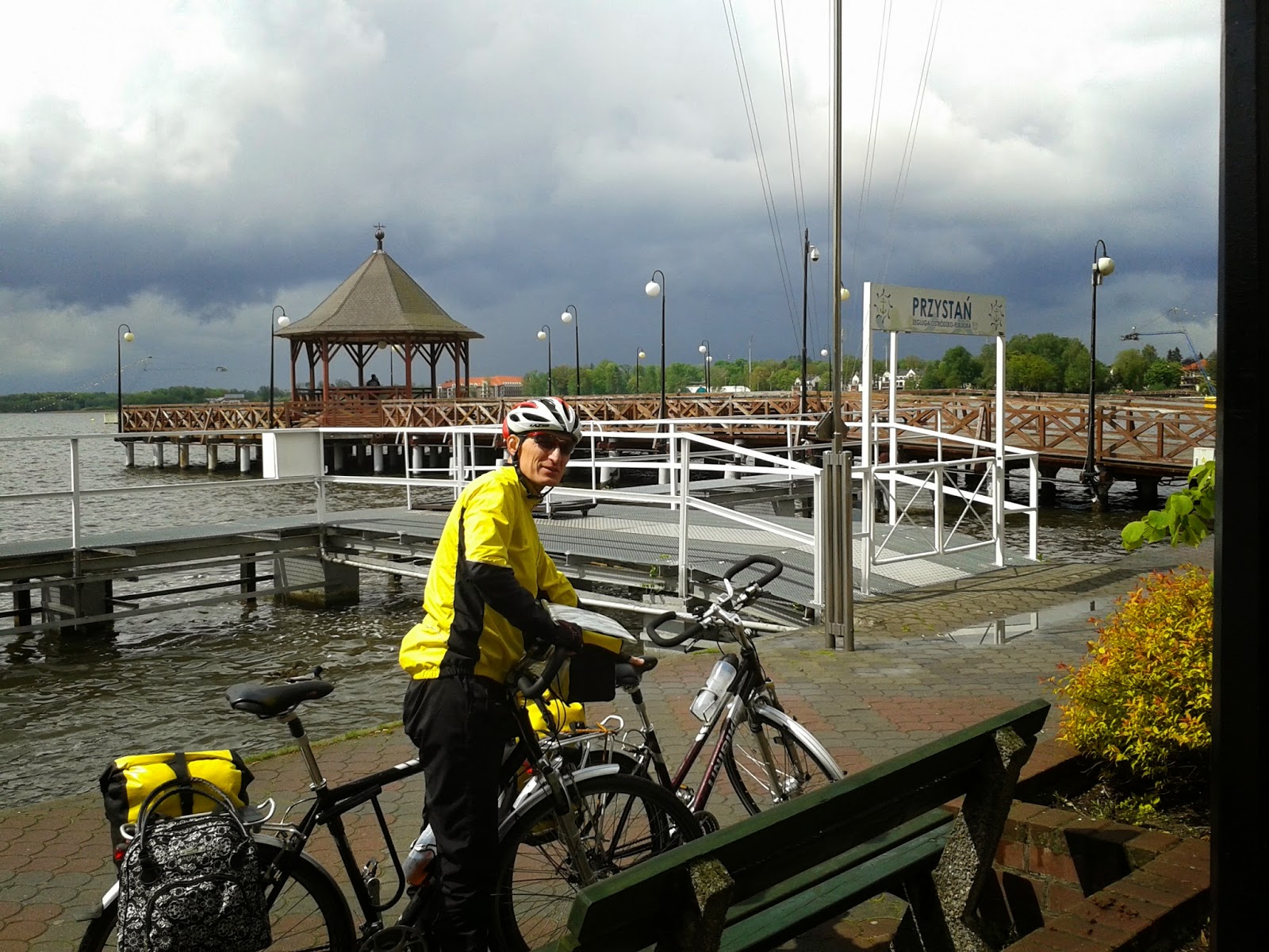 Dziś czeka nas długi etap z Działdowa do Pasłęka przez Ostródę. Lepiej wyjechać wcześniej. Oglądamy jeszcze stado wróbli na wysokim świerku spoglądając na niebo, które wygląda na niezupełnie zachmurzone. Gdy jesteśmy już gotowi do jazdy zaczyna coś kropić. Zakładam zatem przecideszczowe spodnie i postanawiamy założyć ochraniacze na buty. Potem okazało się, że to był dobry wybór. Ranek jest dość rześki, zatem zabranie ciepłych, długich rękawiczek też było dobrym pomysłem.